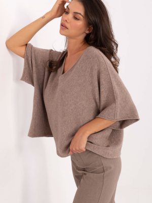 Κασual γυναικείο πουλόβερ σε κανονικό μήκος, τέλειο για καθημερινή χρήση. Κατασκευασμένο από ευχάριστο στο άγγιγμα μείγμα βισκόζης, πολυεστέρα και νάιλον, προσφέρει άνεση και ανθεκτικότητα για μεγάλο χρονικό διάστημα. Η λεία υφή το καθιστά πολυλειτουργικό και εύκολο να συνδυαστεί με διάφορα στοιχεία της γκαρνταρόμπας. Το μοντέλο με κοντά μανίκια και λαιμόκοψη σε σχήμα V συνδυάζει την άνεση με τη θηλυκή ελαφρότητα. Ένα από τα ξεχωριστά πλεονεκτήματα του είναι ότι είναι διπλής όψεως, μπορεί να φορεθεί τόσο με την πλευρά που έχει ορατό ραφή εξωτερικά, όσο και με την πλευρά με κρυφό ραφή, προσφέροντας τη δυνατότητα δημιουργίας διάφορων, πρωτότυπων στυλ.