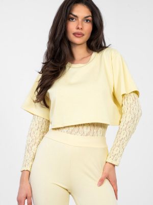 Το διπλό σύμπλεγμα σώματος σε χαλαρό στυλ είναι ένας συνδυασμός άνεσης και γυναικείας αισθητικής. Το μοντέλο ξεχωρίζει για την ποικιλόμορφη υφή του υλικού, η οποία προσδίδει μια σύγχρονη αίσθηση στο σύνολο. Φτιαγμένο από μείγμα πολυεστέρα, βισκόζης και ελαστάνης, το σώμα είναι ελαστικό, μαλακό και άνετο να το φοράτε. Το σώμα έχει κανονικό μήκος και κλασικό, στρογγυλό ντεκολτέ. Μακριά, δαντελωτά μανίκια και μια δαντελωτή κάτω στρώση προσθέτουν ελαφρότητα και διακριτική κομψότητα, ενώ η πάνω στρώση σε μορφή κοντής μπλούζας με κοντά μανίκια δημιουργεί ένα στιλάτο, πολυεπίπεδο look. Το μοντέλο κλείνει με κουμπάκια και εξασφαλίζει άνεση στη χρήση και καλή εφαρμογή. Είναι μια ιδανική πρόταση για καθημερινές στυλιστικές επιλογές, τόσο με τζιν όσο και με φούστα.