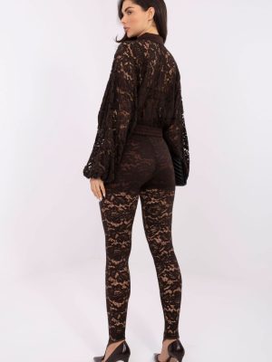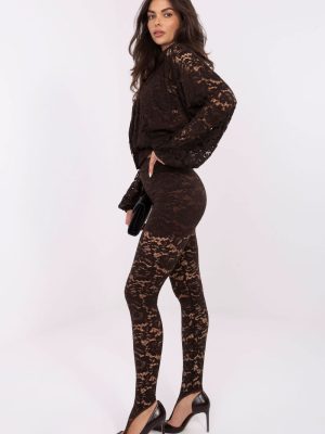 Τα κομψά κολάν από δαντέλα με διαφάνειες είναι ένα μοναδικό μοντέλο που θα σας εξυπηρετήσει τόσο στην καθημερινότητα, όσο και σε πάρτι ή επίσημες περιστάσεις. Κατασκευασμένα από έναν συνδυασμό πολυεστέρα, βισκόζης και ελαστάνης, προσφέρουν ελαστικότητα, άνεση και εντυπωσιακή εφαρμογή στο σώμα. Η ψηλή μέση και η ελαστική ζώνη στη μέση εξασφαλίζουν σταθερή και άνετη εφαρμογή. Οι στενές μπατζάκια τονίζουν τη γραμμή των ποδιών, ενώ το φινίρισμα στο κάτω μέρος με άνοιγμα για το δάχτυλο προσθέτει μοντέρνο, στυλάτο χαρακτήρα. Το διαφανές σχέδιο από δαντέλα προσδίδει στα κολάν κομψότητα και ένταση, ενώ η επένδυση στην επάνω πλευρά αυξάνει την άνεση και αποτρέπει τη διαφάνεια. Το μοντέλο δεν έχει κλείσιμο και τσέπες, προσφέροντας μια ομαλή, καλοσχηματισμένη γραμμή. Είναι η ιδανική επιλογή για γυναίκες που θέλουν να προσθέσουν μια πινελιά αισθητικής κομψότητας στις εμφανίσεις τους.