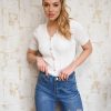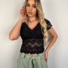 Μπλούζα μπλε με λάστιχο στο πάνω μέρος και πέτρες στα μανίκια.