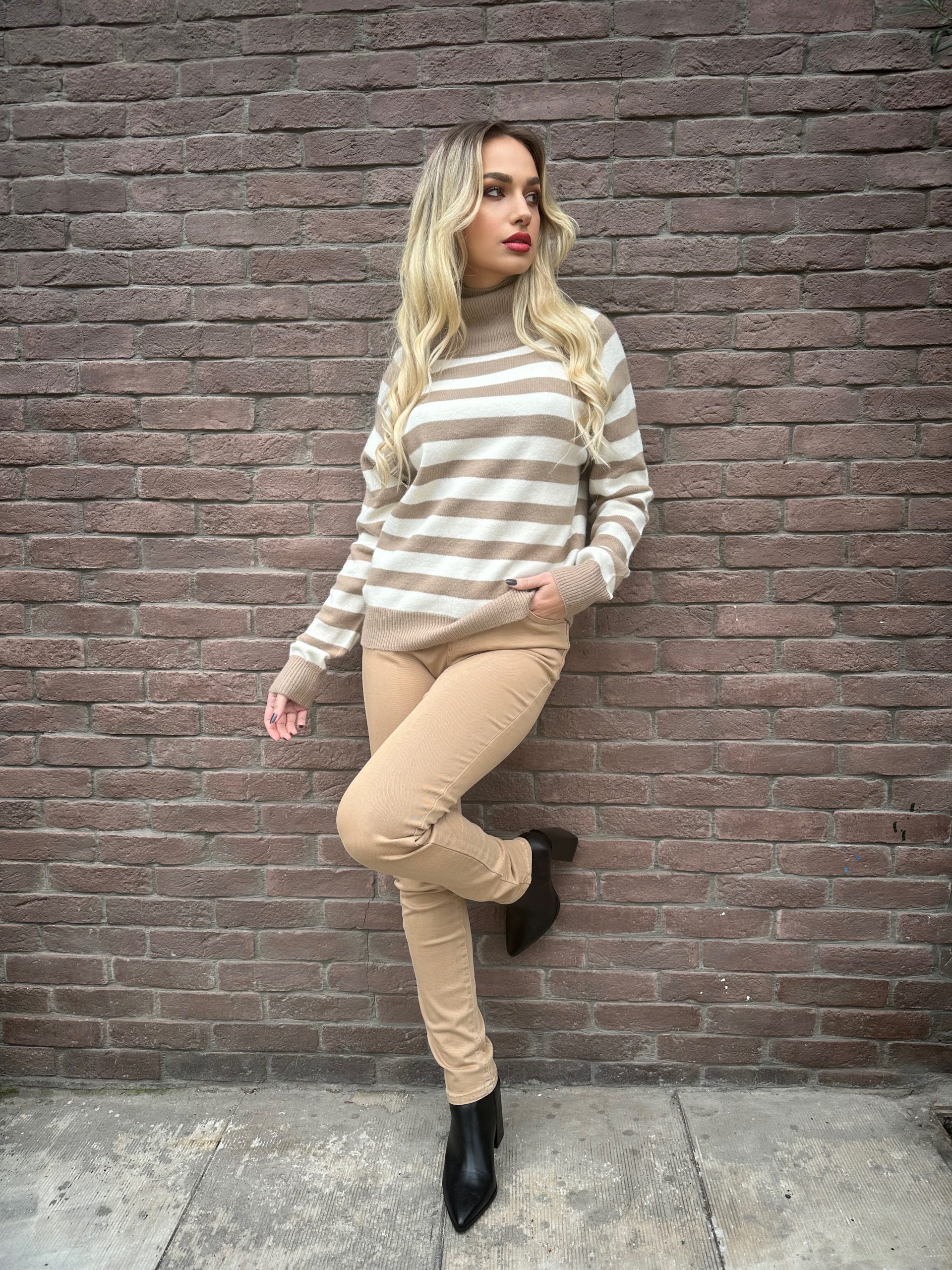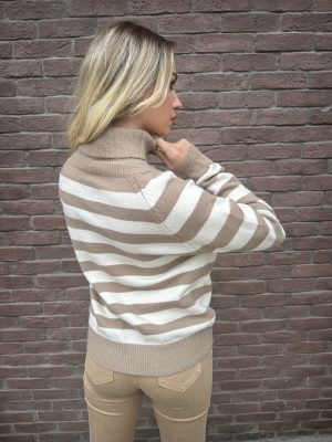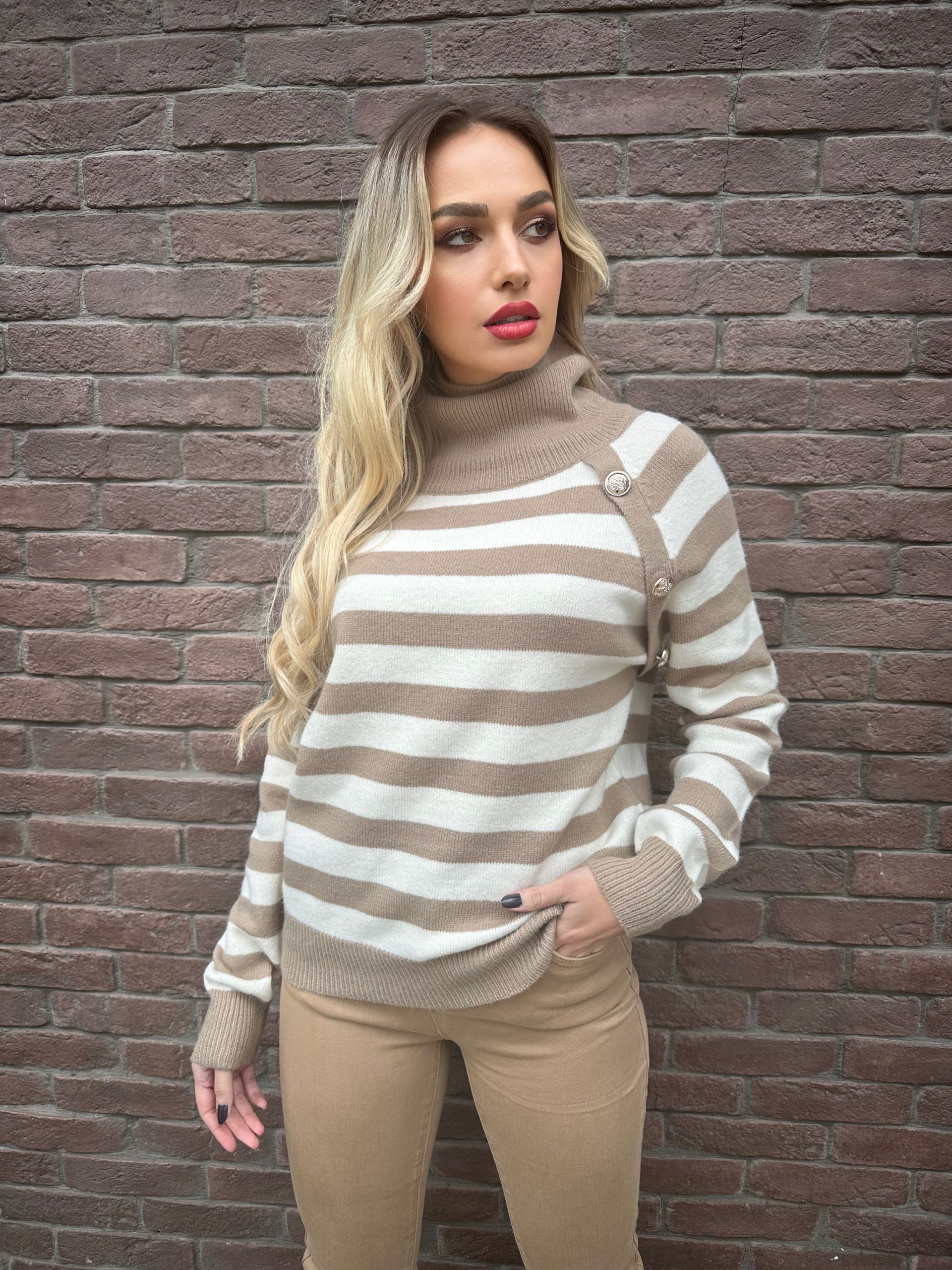 Ριγέ πλεκτή μπλούζα ζιβάγκο με σχέδιο κουμπιά, έχει μακριά μανίκια και κανονικό μήκος. Διαθέτει ελαστικότητα και καλύπτει μεγέθη από xsmall έως και xlarge. Δεν τσιμπάει.