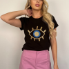 Μπλούζα ριμπ σε μωβ χρώμα, με κοντό μανίκι και διακοσμητικά κουμπιά με διαφανή πέτρες στο μπροστινό μέρος