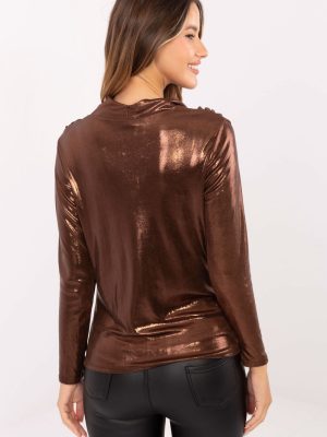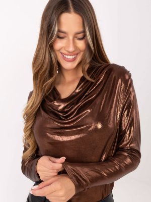 Μία κομψή μπλούζα με εκλεπτυσμένο χαρακτήρα, ιδανική για επίσημες περιστάσεις και εκδηλώσεις. Κατασκευασμένη από λαμπερό υλικό που είναι μείγμα πολυεστέρα και βισκόζης, το οποίο τραβάει την προσοχή και προσθέτει λάμψη στην εμφάνιση. Η μπλούζα διαθέτει ποικιλόμορφη υφή υλικού, που της προσδίδει μοναδική εμφάνιση. Έχει μακριά μανίκια και ρέουσα λαιμόκοψη, που εφαρμόζει όμορφα στο σώμα, προσθέτοντας ελαφρότητα και κομψότητα στο σύνολο. Οι διακοσμητικές πτυχές στο υλικό προσφέρουν ένα επιπλέον στοιχείο φινέτσας, υπογραμμίζοντας τον πρωτότυπο σχεδιασμό της. Το στάνταρ μήκος κάνει την μπλούζα να συνδυάζεται τέλεια με διάφορες εμφανίσεις.