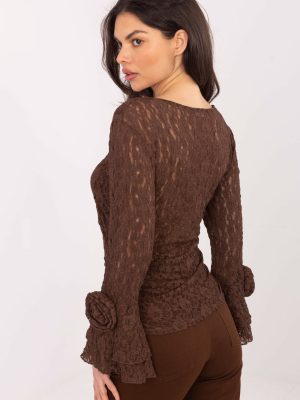 Ένα κομψό δαντελένιο πουκάμισο είναι μια στυλάτη πρόταση που θα ταίριαζε τέλεια τόσο σε ειδικές περιστάσεις όσο και σε καθημερινές εμφανίσεις. Κατασκευασμένο από υλικό υψηλής ποιότητας, που είναι συνδυασμός πολυεστέρα και ελαστάνης, παρέχει άνεση κατά τη διάρκεια της χρήσης και καλή εφαρμογή στη σιλουέτα. Η ποικιλία υφής του υφάσματος δίνει στο πουκάμισο έναν μοναδικό χαρακτήρα και διακριτή κομψότητα. Το μοντέλο έχει κοντό μήκος με στρογγυλή λαιμόκοψη και χωρίς κλείσιμο που φαίνεται ελαφρύ και σύγχρονο. Τα μακριά μανίκια τύπου καμπάνα έχουν τελειώματα με εντυπωσιακές ολοκληρωμένες μπούκλες και διακοσμητικό λουλούδι από ύφασμα, που προσελκύουν την προσοχή και προσθέτουν ρομαντική αίσθηση στο σύνολο. Το μπροστινό μέρος του πουκαμίσου διαθέτει φόδρα, ενώ τα μανίκια και η πλάτη παραμένουν ελαφρώς διαφανή, τονίζοντας τον δαντελένιο χαρακτήρα του μοντέλου. Οι επιπλέον πτυχώσεις στα πλάγια του πουκαμίσου διαμορφώνουν διακριτικά τη σιλουέτα. Το πουκάμισο ταιριάζει ιδανικά ως στοιχείο των επισκεπτικών εμφανίσεων, σε πάρτι, στη δουλειά ή και καθημερινά, σε συνδυασμό με παντελόνια ψηλής μέσης, φούστα ή κομψά τζιν.