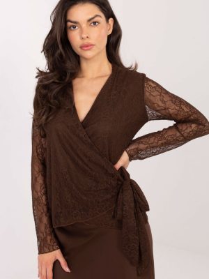 Μια κομψή, γοητευτική μπλούζα φτιαγμένη από λεπτή δαντέλα είναι μια εξαιρετική πρόταση για γυναίκες που εκτιμούν τη σοφιστικέ και διακριτική έκφραση. Το μοντέλο διαθέτει επένδυση που εξασφαλίζει άνεση και κατάλληλη κάλυψη, ενώ τα μανίκια είναι φτιαγμένα αποκλειστικά από δαντέλα χωρίς επένδυση, προσθέτοντας ελαφρότητα και θηλυκή γοητεία στο σύνολο. Η μπλούζα έχει ραφτεί από υλικά υψηλής ποιότητας μείγματος νάιλον και σπάντεξ, χάρη στα οποία είναι ελαστική, ευχάριστη στην αφή και εφαρμόζει τέλεια στη σιλουέτα. Το κοντό μήκος κάνει τη μπλούζα να συνδυάζεται υπέροχα τόσο με φούστες όσο και με κομψά παντελόνια. Ο σαγηνευτικός λαιμός με εντυπωσιακό δέσιμο κάτω από το στήθος από την αριστερή πλευρά τονίζει όμορφα τη γραμμή του λαιμού και της μέσης, προσθέτοντας στη μπλούζα μοναδική κομψότητα. Ο διακριτικός γιακάς ολοκληρώνει το σύνολο, δημιουργώντας μια αρμονική, κλασική εμφάνιση. Είναι η ιδανική μπλούζα για επίσημες περιστάσεις, επαγγελματικές συναντήσεις και κομψές εμφανίσεις στη δουλειά.