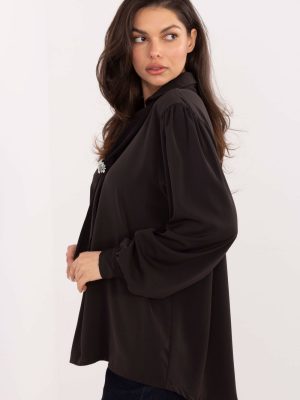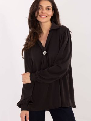 Μια στιλάτη κομψή μπλούζα είναι η ιδανική επιλογή για καθημερινές περιστάσεις, για τη δουλειά καθώς και για επισκέψεις όταν θέλεις να φαίνεσαι κομψή και με στυλ. Το απλό σχέδιο της υπογραμμίζει τον μινιμαλιστικό και ταυτόχρονα πολύ γυναικείο χαρακτήρα, που την καθιστά εξαιρετική σε πολλές εμφανίσεις, τόσο στις επίσημες όσο και στις πιο χαλαρές. Το μοντέλο έχει κατασκευαστεί από ελαφρύ, ευχάριστο στην αφή πολυεστέρα, που τοποθετείται όμορφα στη σιλουέτα. Η μακρυνά μπλούζα και οι μακροχρόνιες μανίκες κάνουν την μπλούζα να φαίνεται κομψή και προσφέρουν άνεση καθ’ όλη τη διάρκεια της ημέρας. Μια ξεχωριστή διακόσμηση είναι η λαιμόκοψη σε σχήμα V με δέσιμο, που επιτρέπει την λεπτή ρύθμιση του στυλ, από πιο κλασική μέχρι ρομαντική. Το σύνολο συμπληρώνεται με αποσπώμενη καρφίτσα, που προσθέτει μια κομψή, κοσμηματική αίσθηση. Οι φουσκωτοί μανίκες εισάγουν μια μοντέρνα, ελαφρώς έντονη γραμμή, ενώ η απουσία κλεισίματος εξασφαλίζει άνεση και απλότητα κατά την τοποθέτηση. Είναι μια μπλούζα που θα αναδείξει εύκολα το κομψό σου στυλ, ανεξάρτητα από την περίσταση.