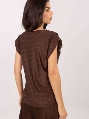 Μια κομψή γυναικεία μπλούζα είναι μια εντυπωσιακή πρόταση που έχει δημιουργηθεί για επίσημες περιστάσεις και εκδηλώσεις, όπου η κομψότητα και ο ιδιαίτερος χαρακτήρας της στυλιστικής προτίμησης μετράνε. Κατασκευασμένη από ένα μείγμα πολυεστέρου και ελαστάνης, προσφέρει απαλή ελαστικότητα, ομαλή τοποθέτηση του υφάσματος και άνεση καθόλη τη διάρκεια της ημέρας. Το μοντέλο έχει κανονικό μήκος και είναι χωρίς μανίκια, εμπλουτισμένο με μαξιλάρια στους ώμους, που αναδεικνύουν όμορφα τη γραμμή της σιλουέτας, προσθέτοντας δομή και κομψότητα. Ο λεπτός ρέουσας λαιμός δίνει στη μπλούζα μια θηλυκή, σ sensual αίσθηση. Όλη η επιφάνεια του υφάσματος διακοσμείται με εφαρμογή από στρασάκια, καθιστώντας τη μπλούζα να γυαλίζει εντυπωσιακά και να τραβάει την προσοχή. Η απουσία κλείσιμου την καθιστά άνετη και εύκολη στη φόρεση. Κομψή, μοναδική και ιδανική για ειδικές εξόδους, ταιριάζει τέλεια με κομψά παντελόνια ή φούστα.