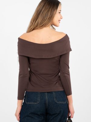 Μια στυλάτη καθημερινή μπλούζα με εφαρμοστό κόψιμο, που αναδεικνύει όμορφα τη σιλουέτα και προσφέρει άνεση κατά την διάρκειά της. Το μοντέλο σε κλασική, λεία εκτέλεση είναι μια ευέλικτη βάση για πολλές στυλιστικές επιλογές, τόσο καθημερινές όσο και πιο θηλυκές. Ο εντυπωσιακός ντεκολτέ τύπου off-shoulder εκθέτει διακριτικά τους ώμους και προσθέτει ελαφρότητα και αισθησιασμό στην συνολική εμφάνιση. Το μακρύ μανίκι κάνει την μπλούζα ιδανική για ψυχρότερες μέρες, ενώ το κανονικό μήκος επιτρέπει την άνετη εφαρμογή της είτε μέσα από το παντελόνι ή τη φούστα, είτε ελεύθερα. Κατασκευασμένη από υψηλής ποιότητας βαμβάκι με προσθήκη ελαστάνης, το ύφασμα είναι μαλακό, ευχάριστο στο δέρμα και ελαστικό, χάρη στο οποίο προσαρμόζεται τέλεια στη σιλουέτα και δεν περιορίζει τις κινήσεις. Η απουσία κλεισίματος τονίζει τον μινιμαλιστικό, σύγχρονο χαρακτήρα του μοντέλου.
