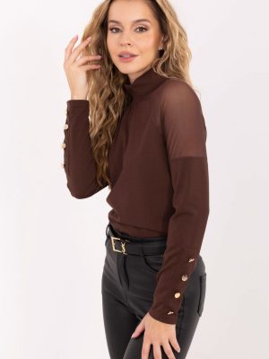 Ένα κομψό μπλουζάκι με λεία φίνις είναι μια στυλάτη επιλογή ιδανική για καθημερινή χρήση, για δουλειά και για επίσημες περιστάσεις. Κατασκευασμένο από υψηλής ποιότητας μείγμα πολυεστέρα, βισκόζης και ελαστάνης, εξασφαλίζει άνεση κατά την φορεσιά και εξαιρετική εφαρμογή. Το μοντέλο ξεχωρίζει με τις διακριτικές δικτυωτές λεπτομέρειες στους ώμους, που προσθέτουν μοντέρνο και γυναικείο χαρακτήρα. Η μπλούζα έχει τυπικό μήκος, μακρύ μανίκι και κλασικό γιακά, που υπογραμμίζει το κομψό στυλ. Οι διακοσμητικοί κόμποι στα μανίκια αποτελούν μια εντυπωσιακή λεπτομέρεια, δίνοντας στο μοντέλο μοναδική έκφραση. Η απουσία κλεισίματος καθιστά την μπλούζα άνετη και εύκολη στην τοποθέτηση. Είναι μια διαχρονική πρόταση για γυναίκες που εκτιμούν το στυλ, την άνεση και τις διακριτικές λεπτομέρειες στις καθημερινές και πιο επίσημες στυλιστικές επιλογές.