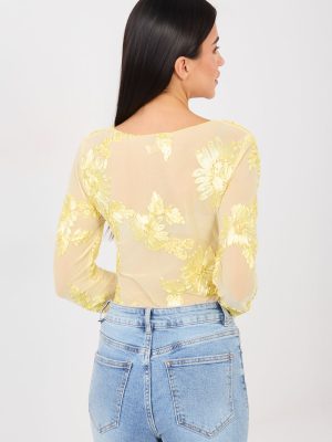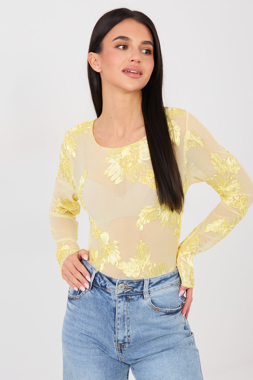 Μια κομψή, εφαρμοστή μπλούζα φτιαγμένη από λεπτό πλέγμα, η οποία υπογραμμίζει υπο subtly την σιλουέτα. Το μοντέλο ξεχωρίζει για το εντυπωσιακό σχέδιο των κεντημένων λουλουδιών, που προσδίδει στο σύνολο μια μοναδική και θηλυκή αίσθηση. Η μπλούζα είναι ιδανική για επίσημες περιστάσεις καθώς και για πάρτι, αποτελώντας ένα στυλάτο στοιχείο στις βραδινές εμφανίσεις. Τα μακριά μανίκια και ο κλασικός, στρογγυλός λαιμός της προσδίδουν κομψότητα και διαχρονική εμφάνιση. Κατασκευασμένη από πολυέστερ με προσθήκη ελαστάνης, εξασφαλίζει άνεση στη χρήση, ελαστικότητα και καλή εφαρμογή. Το κανονικό μήκος της επιτρέπει στην μπλούζα να συνδυάζεται τέλεια με φούστες καθώς και με κομψά παντελόνια.