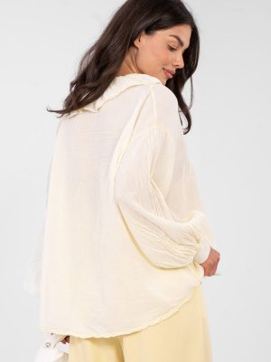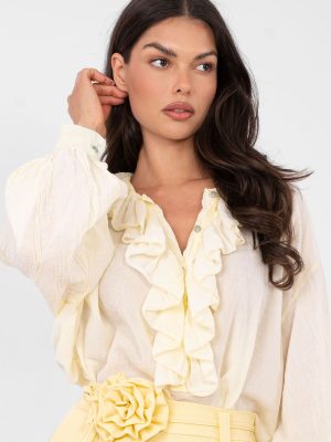 Μια στυλάτη καθημερινή μπλούζα στυλ boho, που συνδυάζει την άνεση με τον γυναικείο, ελαφρώς ρομαντικό χαρακτήρα. Κατασκευασμένη από μαλακό βαμβάκι, προσφέρει άνεση κατά τη διάρκεια της ημέρας και ελευθερία κινήσεων. Το μοντέλο με ομαλή επιφάνεια διαθέτει κλασικό, στρογγυλό λαιμόκομμα με μια λεπτή φρουφρού, που προσθέτει κομψότητα και διακριτή γοητεία. Ο φουσκωτός, μακρύς μανίκι τονίζει τη γυναικεία σιλουέτα και δίνει στο σύνολο μια μοντέρνα boho εμφάνιση. Το κλείσιμο με κουμπιά μπροστά διευκολύνει την εφαρμογή και αποτελεί μια διακριτική διακοσμητική λεπτομέρεια. Το κανονικό μήκος διασφαλίζει ότι η μπλούζα είναι ιδανική τόσο για καθημερινές όσο και για γραφειακές στυλιστικές επιλογές, συνδυάζοντας άνεση με διαχρονικό στυλ.