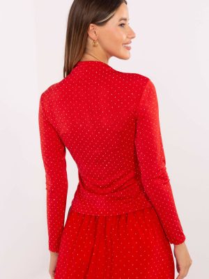 Αυτή η κομψή γυναικεία μπλούζα είναι μια πρόταση για γυναίκες που εκτιμούν το στυλ και τη διακριτική λάμψη σε κάθε επίσημη περίσταση ή κατά τις εξόδους τους σε εκδηλώσεις. Το μοντέλο είναι εφαρμοστό, με κανονικό μήκος, μακριά μανίκια και κλασικό μισό-γκολφ, που του δίνει μια κομψή διάθεση. Κατασκευασμένη από μαλακή μίξη βισκόζης και πολυεστέρα, η μπλούζα είναι ευχάριστη στην αφή, ελαστική και άνετη για καθημερινή χρήση. Όλη την επιφάνεια στολίζουν διακοσμητικά τζετάκια, που προσθέτουν διακριτική γυαλάδα και μοναδική γοητεία σε κάθε στυλιστική επιλογή. Η έλλειψη κλεισίματος καθιστά τη μπλούζα πρακτική και εύκολη στην τοποθέτηση, ενώ η κλασική γραμμή της επιτρέπει να συνδυάζεται με διάφορες φούστες, παντελόνια ή κομψά επίσημα παντελόνια.