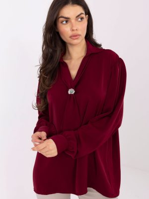 Μια στυλάτη κομψή μπλούζα είναι η ιδανική επιλογή για την καθημερινότητα, για τη δουλειά καθώς και για επίσημες περιστάσεις, όταν θέλεις να φαίνεσαι κομψή και με στυλ. Το λείο σχέδιο τονίζει τον μινιμαλιστικό, αλλά ταυτόχρονα πολύ θηλυκό χαρακτήρα της, γι’ αυτό και θα ταιριάζει άψογα σε πολλές στυλιστικές επιλογές, τόσο στις επίσημες όσο και στις πιο ελεύθερες. Το μοντέλο είναι κατασκευασμένο από ελαφρύ, ευχάριστο στο άγγιγμα πολυεστέρα, που διαμορφώνεται όμορφα πάνω στη σιλουέτα. Η επιμηκυμένη γραμμή και το μακρύ μανίκι κάνουν τη μπλούζα να φαίνεται κομψή και παρέχουν άνεση κατά τη διάρκεια όλης της ημέρας. Ένα ιδιαίτερο διακοσμητικό στοιχείο είναι ο V λαιμός με δέσιμο, ο οποίος επιτρέπει μια διακριτική ρύθμιση του στυλ, από πιο κλασικό μέχρι ρομαντικό. Το σύνολο ολοκληρώνεται με μια αποσπώμενη brooch, που προσθέτει μια κομψή, κοσμηματική αίσθηση. Τα φουσκωτά μανίκια εισάγουν μια μοντέρνα, ελαφρώς επιβλητική γραμμή, ενώ η απουσία κλεισίματος εξασφαλίζει άνεση και απλότητα στην τοποθέτηση. Είναι μια μπλούζα που θα αναδείξει εύκολα το κομψό σου στυλ, ανεξαρτήτως περίστασης.