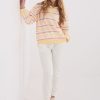 Ένα κομψό γυναικείο μπλουζάκι με δαντέλα είναι μια στυλάτη πρόταση που θα φαίνεται εξαιρετικά τόσο στη δουλειά, όσο και σε επίσημες επισκέψεις και πάρτι. Ο διακριτικός σχεδιασμός και η κλασική μορφή κάνουν το μπλουζάκι ένα καθολικό στοιχείο της γυναικείας γκαρνταρόμπας. Το μοντέλο με κανονικό μήκος έχει κατασκευαστεί από υψηλής ποιότητας μείγμα βισκόζης και ελαστάνης, κάτι που εξασφαλίζει άνεση, ευελιξία και ιδανική προσαρμογή στο σώμα. Η ποικιλόμορφη υφή του υλικού αναδεικνύει τον κομψό χαρακτήρα του μπλουζιού και του δίνει μοναδική εμφάνιση. Το μπλουζάκι διαθέτει μακριά μανίκια και στυλάτο ντεκολτέ τύπου καμπίνας, το οποίο διακριτικά εκθέτει τη γραμμή των ώμων και του λαιμού. Το μοντέλο δεν έχει κλείσιμο, φοριέται πάνω από το κεφάλι, διασφαλίζοντας άνεση και αισθητική τελειότητα. Είναι η ιδανική επιλογή για γυναίκες που εκτιμούν την κομψότητα, τη θηλυκότητα και τον διαχρονικό στυλ σε κάθε περίσταση.
