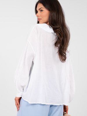 Μια στυλάτη καθημερινή μπλούζα σε boho στυλ, που συνδυάζει την άνεση με τον γυναικείο, ελαφρώς ρομαντικό χαρακτήρα. Κατασκευασμένη από μαλακό βαμβάκι, προσφέρει άνεση στη φορεσιά και ελευθερία κινήσεων καθ’ όλη τη διάρκεια της ημέρας. Το μοντέλο με την ομαλή ύφανση διαθέτει κλασικό, στρογγυλό ντεκολτέ με λεπτό ραμμένο κολάρο, που προσθέτει κομψότητα και υποβλητική γοητεία. Ο φουσκωτός, μακρύς μανίκι τονίζει τη γυναικεία γραμμή και δίνει στην εμφάνιση μια μοντέρνα, boho όψη. Το κλείσιμο με αρκετούς κουμπιά μπροστά διευκολύνει την τοποθέτηση και αποτελεί μια διακριτική διακοσμητική λεπτομέρεια. Η τυπική μήκος εξασφαλίζει ότι η μπλούζα είναι ιδανική τόσο για καθημερινές όσο και για επαγγελματικές εμφανίσεις, συνδυάζοντας την άνεση με τον διαχρονικό στυλ.