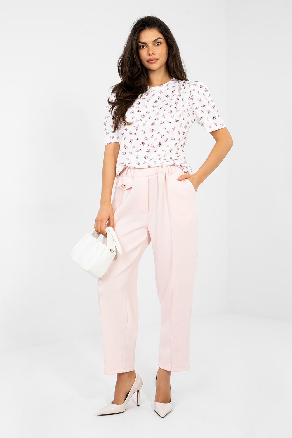 Η κομψή καθημερινή μπλούζα είναι ο ιδανικός συνδυασμός άνεσης και γυναικείου στυλ. Ιδανικά θα ταιριάξει τόσο για καθημερινή χρήση όσο και για τη δουλειά, δημιουργώντας στυλάτες και τακτοποιημένες εμφανίσεις. Το μοντέλο με το κανονικό μήκος διαθέτει κλασικό, στρογγυλό ντεκολτέ και κοντό μανίκι, κάτι που εξασφαλίζει άνεση κατά τη διάρκεια όλης της ημέρας. Εκτύπωση με λουλούδια προσδίδει σε όλη την εμφάνιση μια διακριτική, φρέσκια χαρακτήρα, τονίζοντας το γυναικείο στυλ. Διακοσμητές θλίψεις προσθέτουν μια πινελιά κομψότητας στην μπλούζα και διαμορφώνουν ήπια τη σιλουέτα. Κατασκευασμένη από ένα μείγμα πολυεστέρα, βισκόζης και ελαστάνης, συνδυάζει αντοχή με απαλότητα και ελαστικότητα του υλικού, εξασφαλίζοντας άνεση και ελευθερία κινήσεων. Αυτή είναι μια καθολική πρόταση, η οποία ταιριάζει εξαιρετικά με κομψά παν trousers, φούστες ή κλασικά τζιν.