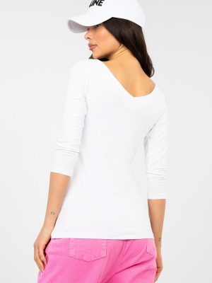 Μια στιλάτη και άνετη καθημερινή μπλούζα με εφαρμοστή γραμμή, που αναδεικνύει όμορφα τη σιλουέτα, προσφέροντας παράλληλα πλήρη άνεση κατά τη φόρεσή της. Κατασκευασμένη από υψηλής ποιότητας βαμβάκι με προσθήκη ελαστάνης, είναι μαλακή, ευχάριστη στην επιδερμίδα και ελαφρώς ελαστική, γεγονός που την καθιστά ιδανική για τέλεια εφαρμογή στο σώμα. Το μοντέλο έχει κανονικό μήκος με μανίκια 3/4 και είναι κατάλληλο τόσο για ζεστές μέρες όσο και ως στοιχείο layering σε στιλιστικές επιλογές. Η μπλούζα διαθέτει γυναικείο ντεκολτέ σε σχήμα V μπροστά και στην πλάτη, προσδίδοντας της λεπτότητα και μοντέρνο χαρακτήρα. Η λεία απεικόνιση αναδεικνύει την ευχρησία της και διευκολύνει την προσαρμογή της σε πολλές στυλιστικές προτάσεις. Η απουσία κλεισίματος αυξάνει την άνεση στη χρήση και δίνει συνολικά μια μινιμαλιστική εμφάνιση.