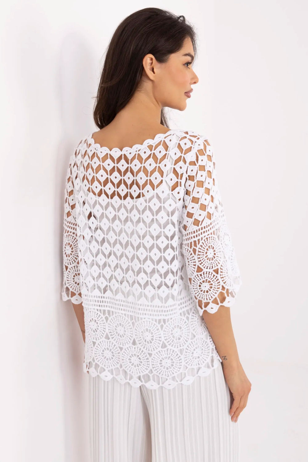 Διπλό σετ με boho στυλ, ελαφριά, αέρινη μπλούζα από βαμβάκι και εφαρμοστό τοπάκι με λεπτές τιράντες. Ιδανική επιλογή για καθημερινή χρήση για γυναίκες που εκτιμούν την ελευθερία, τη θηλυκότητα και τα φυσικά υλικά. Η μπλούζα διαθέτει αέρινο σχέδιο, που της προσδίδει ρομαντικό και αιθέριο χαρακτήρα. Κατασκευασμένη από αεριζόμενο βαμβάκι, έχει κανονικό μήκος και μανίκια 3/4, γεγονός που την καθιστά ιδανική για πιο ζεστές μέρες. Ο στρογγυλός λαιμός τονίζει τη γραμμή του λαιμού, ενώ η χαλαρή γραμμή προσφέρει άνεση. Στο σετ περιλαμβάνεται ελαστικό τοπάκι με λεπτές τιράντες, κατασκευασμένο από μαλακό βισκόζη με προσθήκη ελαστάνης, που προσαρμόζεται εξαιρετικά στη σιλουέτα και παρέχει άνεση καθ’ όλη τη διάρκεια της ημέρας.
