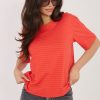 Καθημερινό μπλουζάκι με έναν καθολικό χαρακτήρα, που θα αποδειχθεί εξαιρετικό σε πολλές στυλιστικές επιλογές. Το μοντέλο ξεχωρίζει με την αντίθετη γραφή στο μπροστινό μέρος, που προσδίδει σε όλη την εμφάνιση σύγχρονο και χαλαρό στυλ. Κατασκευάζεται από ένα ευχάριστο στην αφή μίγμα βισκόζης και ελαστάνης, εξασφαλίζοντας άνεση κατά την εφαρμογή και απαλό ταίριασμα με τη σιλουέτα. Η κανονική μήκος και το κοντό μανίκι καθιστούν το μπλουζάκι ιδανικό για θερμότερες μέρες ή ως βάση για άλλα κομμάτια της γκαρνταρόμπας. Διαθέτει κλασικό, στρογγυλό ντεκολτέ και δεν έχει κλείσιμο, κάτι που υπογραμμίζει περαιτέρω τον άνετο, casual χαρακτήρα του.