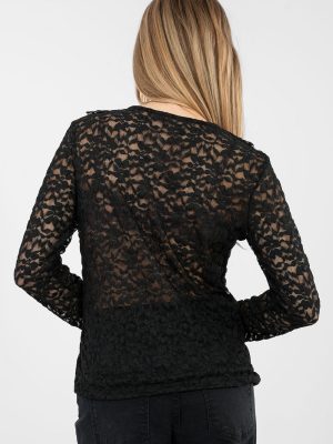 Καταπληκτική μπλούζα δαντέλας με κομψό χαρακτήρα, ιδανική για επίσημες περιστάσεις, για τη δουλειά, για πάρτι καθώς και για καθημερινές εμφανίσεις σε πιο Chic έκδοση. Η ποικιλία της υφής του υλικού προσδίδει σε όλη την εμφάνιση μία ξεχωριστή και διακριτικά διακοσμητική όψη. Η μπλούζα είναι κατασκευασμένη από υψηλής ποιότητας βισκόζη με πρόσθετο ελαστάν, το οποίο εξασφαλίζει άνεση κατά τη διάρκεια της φοράς και ήπια εφαρμογή στη σιλουέτα. Το μοντέλο έχει κανονικό μήκος, με μακριά μανίκια και κλασικό, στρογγυλό ντεκολτέ. Η απουσία κουμπώματος καθιστά τη μπλούζα άνετη και εύκολη στην τοποθέτηση. Στο μπροστινό μέρος υπάρχει επένδυση, η οποία αυξάνει την άνεση στη φορά και την αισθητική του φινιρίσματος, ενώ η διακοσμητική βολάν προσθέτει κομψότητα και θηλυκό χαρακτήρα. Είναι η ιδανική επιλογή για παντελόνια, φούστες ή κάτω από σακάκια, τόσο για επίσημες συναντήσεις όσο και για ιδιαίτερες περιστάσεις.