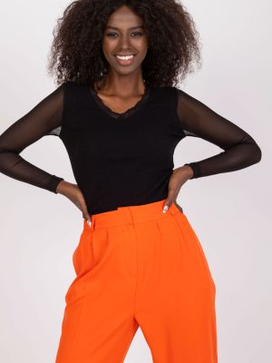 Μπλούζα με γραμμή από ύφασμα με ραβδώσεις. Μπλούζα με μακριά διαφανή μανίκια και λαιμόκοψη V.