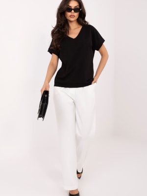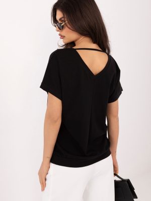 Μια πανέμορφη μπλούζα με καθημερινό χαρακτήρα, που είναι ιδανική τόσο για καθημερινή χρήση όσο και για δουλειά. Το απλό σχέδιο της προσφέρει διαχρονική κομψότητα, κάνοντάς την εύκολη να συνδυαστεί με πολλές στυλιστικές επιλογές. Κατασκευασμένη από υψηλής ποιότητα μείγμα βαμβακιού και ελαστάνης, προσφέρει άνεση κατά την χρήση και ελαφριά εφαρμογή στο σώμα. Το κανονικό μήκος και τα κοντά μανίκια την καθιστούν ιδανική για οποιαδήποτε εποχή του χρόνου. Η μπλούζα διαθέτει εντυπωσιακό ντεκολτέ σε σχήμα V τόσο μπροστά όσο και στην πλάτη, προσθέτοντας μια διακριτική θηλυκότητα. Το μοντέλο είναι χωρίς κλείσιμο, κάτι που τονίζει την άνετη και μινιμαλιστική του φύση.