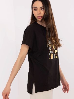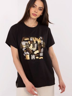 Γυναικεία casual μπλούζα ιδανική για καθημερινές στυλιστικές επιλογές. Ραμμένη από μείγμα υψηλής ποιότητας βαμβακιού και ελαστάνης, εγγυάται άνεση κατά την χρήση και ελευθερία κινήσεων. Μοντέλο κανονικού μήκους, με κοντό μανίκι και κλασικό, στρογγυλό ντεκολτέ, που ταιριάζει τέλεια σε πολλές καθημερινές συνθέσεις. Η μπλούζα διακοσμείται με εντυπωσιακή εκτύπωση εμπλουτισμένη με εφαρμογές και μικρές στρας, που προσθέτουν μια διακριτική λάμψη και μοντέρνα χαρακτήρα. Ιδανική πρόταση για γυναίκες που αγαπούν να συνδυάζουν την άνεση με λεπτομέρειες που είναι κομψές και μοντέρνες.