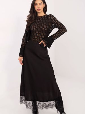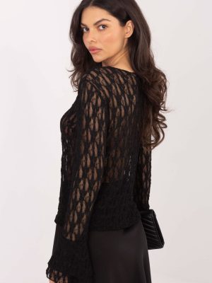 Η κομψή, εφαρμοστή δαντελένια μπλούζα είναι ένα μοναδικό μοντέλο που θα αποδειχθεί εξαιρετικό σε επίσημες περιστάσεις, σε εκδηλώσεις και σε στυλάτες ενδυμασίες για τη δουλειά. Φτιαγμένη από υψηλής ποιότητας βισκόζη με προσθήκη ελαστάνης, εντυπωσιάζει με την απαλότητά της, την ελαστικότητα και την άνεση στην εφαρμογή. Η ποικιλόμορφη υφή του υλικού προσδίδει μια απαλή, εκλεπτυσμένη κομψότητα στο σύνολο. Η μπλούζα έχει κανονικό μήκος και μακρύ μανίκι τύπου καμπάνα, το οποίο επεκτείνεται εντυπωσιακά προς τα κάτω, δημιουργώντας μια διακριτική, γυναικεία αίσθηση. Επιπλέον, τα μανίκια έχουν διακοσμηθεί με βολάν, τονίζοντας τον κομψό, ελαφρώς ρομαντικό χαρακτήρα του μοντέλου. Ο ντεκολτέ τύπου μπουντουάρ εκθέτει όμορφα τη γραμμή του λαιμού και των ώμων, προσθέτοντας στην εμφάνιση ελαφρότητα και κομψότητα. Είναι μια πρόταση που συνδυάζει σικ, θηλυκότητα και άνεση. Ιδανική για ξεχωριστές εξόδους, οικογενειακές τελετές, για το γραφείο ή για βραδινές συναντήσεις, όπου θέλεις να δείχνεις κομψή και με στυλ.