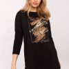 Γυναικείο casual μπλουζάκι κανονικού μήκους, φτιαγμένο από υψηλής ποιότητας βαμβάκι με πρόσθετο ελαστάν, που εξασφαλίζει άνεση κατά τη διάρκεια της εφαρμογής και ιδανική προσαρμογή στη σιλουέτα. Το μοντέλο με μανίκι 3/4 και στρογγυλή λαιμόκοψη είναι η τέλεια επιλογή για καθημερινή χρήση. Το κυρίαρχο σχέδιο με γραφικά του δίνει μοντέρνο χαρακτήρα, ενώ οι διακοσμητικές τζετ στη μπροστινή πλευρά υπογραμμίζουν διακριτικά την κομψή εμφάνιση. Ιδανικό για τζιν, φούστες και casual στυλ.