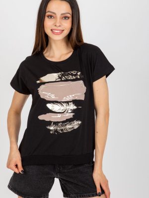 Βαμβακερή μπλούζα με κοντά μανίκια και στρογγυλή λαιμόκοψη. Διακοσμητική εκτύπωση στο μπροστινό μέρος.