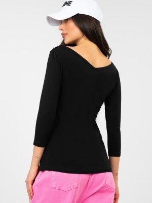 Μια στυλάτη και άνετη καθημερινή μπλούζα με εφαρμοστό κόψιμο, που αναδεικνύει όμορφα τη σιλουέτα, προσφέροντας ταυτόχρονα πλήρη άνεση στη χρήση. Ραμμένη από υψηλής ποιότητας βαμβάκι με προσθήκη ελαστάνης, είναι μαλακή, ευχάριστη στην επαφή με το δέρμα και ελαφρώς ελαστική, γεγονός που την καθιστά ιδανική για να προσαρμόζεται στο σώμα. Το μοντέλο έχει κανονικό μήκος με μανίκια 3/4, κατάλληλο τόσο για θερμές μέρες, όσο και ως στοιχείο στρωμάτων ντυσίματος. Η μπλούζα διαθέτει γυναικείο ντεκολτέ σε σχήμα V μπροστά και πίσω, το οποίο της προσδίδει μια διακριτική ελαφρότητα και μοντέρνο χαρακτήρα. Η λεία επιφάνεια τονίζει την καθολικότητά της και διευκολύνει την προσαρμογή της σε πολλές στυλιστικές προτάσεις. Η απουσία κλεισίματος αυξάνει την άνεση χρήσης και προσθέτει στην όλη εμφάνιση ένα μινιμαλιστικό στυλ.