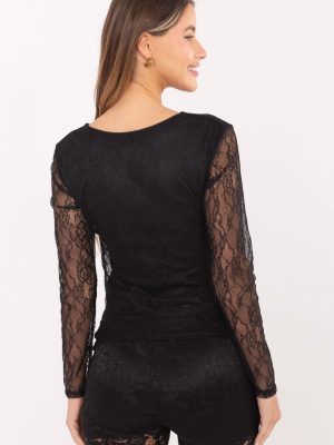 Μια σικάτη και γυναικεία μπλούζα από δαντέλα, που συνδυάζει την κομψότητα με έναν απαλό ρομαντικό στυλ. Κατασκευασμένη από υψηλής ποιότητας μείγμα νάιλον και σπάντεξ, είναι ελαστική, λεπτεπίλεπτη και ταιριάζει όμορφα με τη σιλουέτα. Το ύφασμα με σχέδιο από δαντέλα προσφέρει ελαφρότητα και χάρη, ενώ η στρογγυλή λαιμόκοψη τονίζει τον κλασικό χαρακτήρα της μπλούζας. Το μοντέλο διαθέτει μακριά μανίκια χωρίς επένδυση, που αναδεικνύουν διακριτικά τους ώμους, καθώς και επένδυση στην κύρια περιοχή, εξασφαλίζοντας άνεση και κομψό φινίρισμα. Ένα επιπλέον πλεονέκτημα είναι οι διακοσμητικές πτυχές στη δεξιά πλευρά, που δημιουργούν όμορφα σιλουέτα και προσθέτουν μοναδικό χαρακτήρα. Η μπλούζα έχει κανονικό μήκος και θα λειτουργήσει τέλεια τόσο σε καθημερινές όσο και σε επίσημες στυλιστικές επιλογές σε συνδυασμό με φούστα ή κομψό παντελόνι.