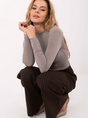 Η προσαρμοσμένη μπλούζα τύπου longsleeve είναι μια универсальная πρόταση σε casual στυλ, ιδανική για καθημερινές εμφανίσεις. Ο κλασικός κόψιμος τονίζει διακριτικά τη σιλουέτα, παρέχοντας ταυτόχρονα άνεση καθ’ όλη τη διάρκεια της ημέρας. Το μοντέλο έχει κανονικό μήκος, με μακριά μανίκια και κλασικό στρογγυλό ντεκολτέ, και είναι ιδανικό ως βάση για πολλές εμφανίσεις, φορώντας το μόνο του ή κάτω από πουλόβερ, σακάκι ή κάρντιγκαν. Η απουσία κλεισίματος τονίζει τη απλή, μινιμαλιστική του φόρμα. Η μπλούζα είναι κατασκευασμένη από μείγμα υψηλής ποιότητας από βισκόζη, νάιλον, κασμίρ και ελαστάνη, γεγονός που εγγυάται εξαιρετική απαλότητα, ευκαμψία και άνεση στη χρήση. Είναι η ιδανική επιλογή για γυναίκες που εκτιμούν την άνεση, τα φυσικά υλικά και την διαχρονική καθημερινή μόδα.