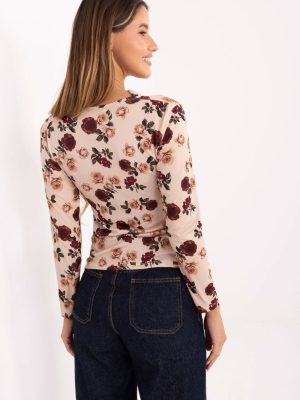 Μια κομψή γυναικεία μπλούζα με στενή γραμμή είναι μια ιδανική πρόταση τόσο για τη δουλειά, όσο και για επαγγελματικές συναντήσεις καθώς και για καθημερινή χρήση. Ραμμένη από ευχάριστο στο άγγιγμα μείγμα βισκόζης και πολυεστέρα, συνδυάζει άνεση με αντοχή. Το λουλουδένιο μοτίβο της προσδίδει θηλυκό χαρακτήρα, ενώ το κανονικό μήκος και τα μακριά μανίκια την κάνουν να δείχνει κομψή και διαχρονική. Ο ρέον ντεκολτέ εφαρμόζει όμορφα στη σιλουέτα, ενώ οι διακριτικές πτυχές στον αριστερό ώμο, διακοσμημένες με μεταλλικό κλιπ, αποτελούν μια μοναδική λεπτομέρεια που υπογραμμίζει το κομψό στυλ της μπλούζας. Το μοντέλο χωρίς κλείσιμο εξασφαλίζει άνεση και ελευθερία στην εφαρμογή.