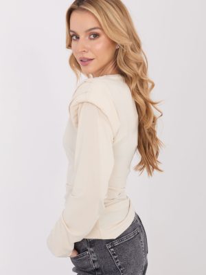 Μια κομψή μπλούζα σε κανονικό μήκος, κατασκευασμένη από κυρίαρχο μείγμα πολυεστέρα και βισκόζης, που παρέχει άνεση κατά την χρήση, απαλή υφή υλικού και ιδανική εφαρμογή στο σώμα. Διατηρείται σε ομαλό, μινιμαλιστικό σχέδιο, που θα ταιριάξει τέλεια σε πολλές περιστάσεις, από καθημερινές εμφανίσεις, μέχρι επαγγελματικά σετ και έως επίσημες και εορταστικές εξόδους. Το μοντέλο διαθέτει μακρύ μανίκι και στρογγυλή λαιμόκοψη, που τονίζει διακριτικά τη γραμμή του λαιμού και προσδίδει στην μπλούζα έναν κλασικό, κομψό χαρακτήρα. Οι ραμμένες μαξιλάρες στους ώμους προσφέρουν όμορφες αναλογίες στο σώμα και προσθέτουν μια μοντέρνα εμφάνιση. Η μπλούζα έχει ολοκληρωθεί με πιέτες στους ώμους και στη δεξιά πλευρά, που οπτικά διαμορφώνουν τη γραμμή του σώματος. Στην περιοχή της πιέτας στη δεξιά πλευρά τοποθετήθηκε ένα μεταλλικό διακοσμητικό, που αποτελεί στυλάτη και ελκυστική πινελιά. Το μοντέλο δεν έχει κούμπωμα, γεγονός που το καθιστά άνετο στην εφαρμογή και εξαιρετικά ευκολοφόρετο κατά τη διάρκεια της χρήσης. Είναι η ιδανική επιλογή για γυναίκες που εκτιμούν τον συνδυασμό κομψότητας, μοντέρνου φινιρίσματος και άνεσης.