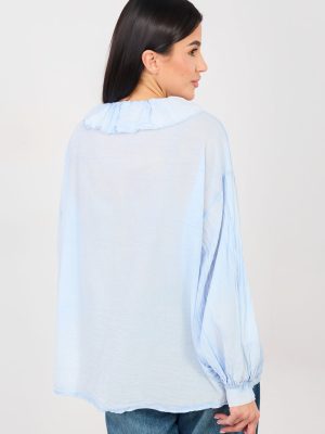 Μια στυλάτη καθημερινή μπλούζα σε στυλ μποχό, που συνδυάζει άνεση με γυναικεία, ελαφρώς ρομαντική διάθεση. Φτιαγμένη από μαλακό βαμβάκι, προσφέρει άνεση κατά τη διάρκεια της ημέρας και ελευθερία κινήσεων. Το μοντέλο με την ομαλή σχεδίαση διαθέτει κλασικό, στρογγυλό ντεκολτέ με λεπτό ζαμπόν, που προσθέτει κομψότητα και λεπτή γοητεία. Οι φουσκωτοί, μακριοί μανίκοι υπογραμμίζουν τη γυναικεία σιλουέτα και προσδίδουν σε όλο το σύνολο μια μοντέρνα, μποχό εμφάνιση. Το κλείσιμο με αρκετά κουμπιά μπροστά διευκολύνει την εφαρμογή και αποτελεί μια λεπτή διακοσμητική λεπτομέρεια. Το κανονικό μήκος διασφαλίζει ότι η μπλούζα θα είναι ιδανική τόσο για καθημερινές όσο και για επαγγελματικές εμφανίσεις, συνδυάζοντας άνεση με διαχρονικό στυλ.