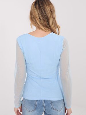 Κομψό μπλουζάκι από λεπτό δίχτυ με εφαρμοστή γραμμή, που τονίζει διακριτικά τη σιλουέτα και δίνει στην εμφάνιση μια εκλεπτυσμένη αίσθηση. Κατασκευασμένο από μίγμα πολυεστέρα και ελαστάνης, προσφέρει άνεση κατά την χρήση και ελαστικότητα στο υλικό. Το μοντέλο με λείο σχέδιο διαθέτει κλασικό, στρογγυλό ντεκολτέ και μακριά μανίκια, που παραμένουν χωρίς επένδυση, δημιουργώντας ελαφρύ και αισθησιακό αποτέλεσμα. Το μπλουζάκι έχει επένδυση στο σώμα, που εγγυάται άνεση και αισθητική ολοκλήρωση. Τα διακοσμητικά φουσκώματα προσθέτουν κομψότητα συνολικά και διακριτικά διαμορφώνουν τη σιλουέτα. Το κανονικό μήκος εξασφαλίζει ότι το μπλουζάκι θα ταιριάζει τέλεια τόσο για επαγγελματικές εμφανίσεις, εγκάρδιες επισκέψεις όσο και για κομψές εξόδους ή εκδηλώσεις.