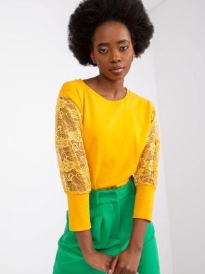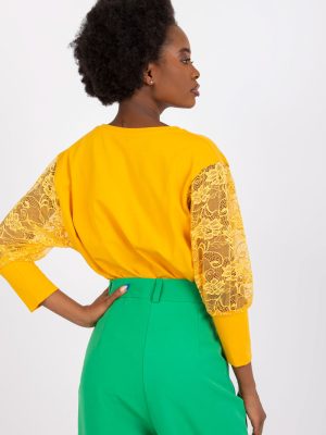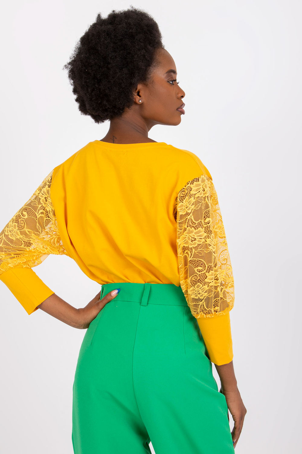 Μπλούζα σε ίσια γραμμή με 3/4 μανίκια από δαντέλα και στρογγυλή λαιμόκοψη.