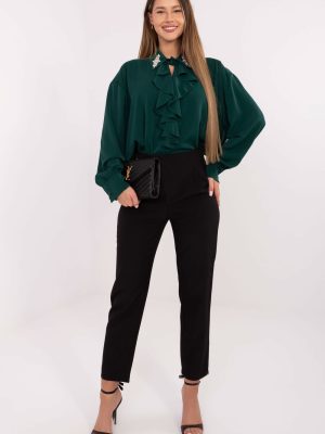 Μια ιδιαίτερα κομψή μπλούζα σχεδιασμένη για επίσημες περιστάσεις, δουλειά και έξοδο σε πάρτι. Το απαλό σχέδιο προσδίδει στην συνολική εμφάνιση κλάση και διακριτική κομψότητα, κάνοντάς την ιδανική τόσο για επίσημες όσο και για πιο βραδινές στυλιστικές επιλογές. Το μοντέλο έχει κατασκευαστεί από ελαφρύ, ευχάριστο στην αφή πολυεστέρα, ο οποίος αναδεικνύει υπέροχα τη σιλουέτα. Η μακρυά μήκος, με χαρακτηριστική πλάτη πιο μακριά από το μπροστινό μέρος, προσδίδει στην μπλούζα μια μοντέρνα και εξαιρετικά θηλυκή διάσταση. Η μπλούζα εντυπωσιάζει με τις λεπτομέρειές της, ο φαρδύς γιακάς με τις διακοσμήσεις και η διακριτική ζαμπόν τονίζουν το κομψό της στυλ. Οι φουσκωτοί ώμοι προσθέτουν ελαφρότητα και μοντέρνα, έντονη μορφή, δημιουργώντας μια εντυπωσιακή, αλλά ακόμα πολύ αρμονική συνολική εμφάνιση. Η απουσία κλεισίματος καθιστά την μπλούζα άνετη και εύκολη στην τοποθέτηση. Είναι το ιδανικό μοντέλο για γυναίκες που εκτιμούν την κομψότητα, την άνεση και τις πρωτότυπες λεπτομέρειες σε καθημερινές αλλά και σε ξεχωριστές στυλιστικές επιλογές.