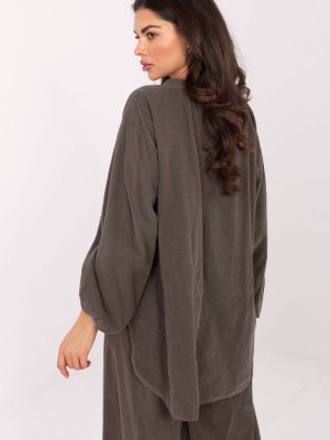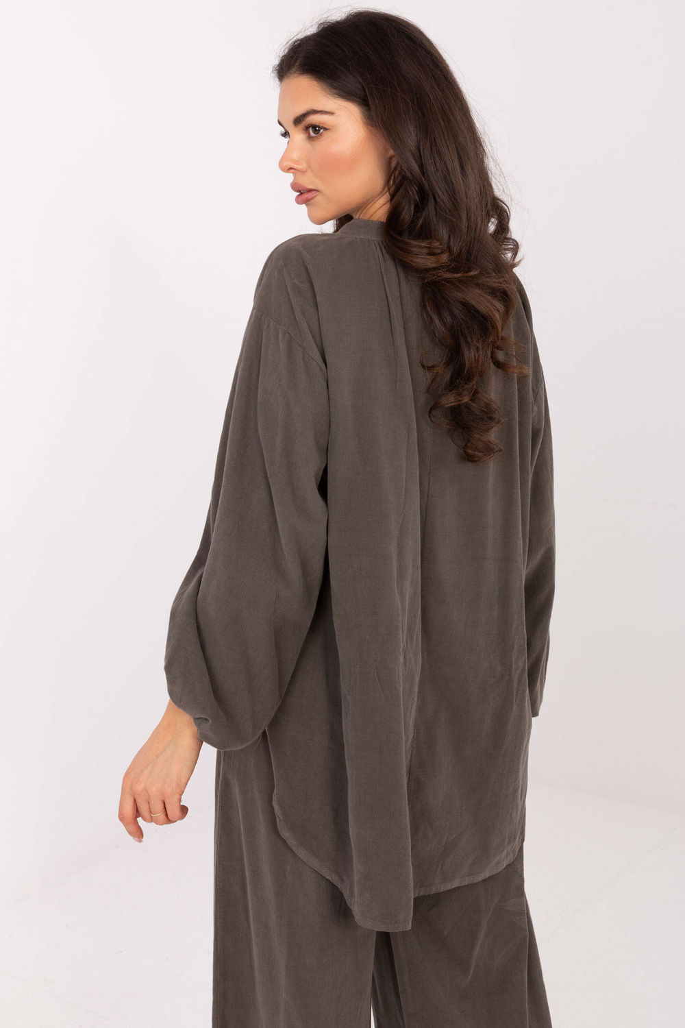 Στυλάτη μπλούζα πουκάμισου σε κασual έκδοση, ιδανική για καθημερινή χρήση. Κατασκευασμένη από ελαφρύ και ευχάριστο στην αφή πολυέστερ, παρέχει άνεση κατά τη διάρκεια όλης της ημέρας. Το μοντέλο διαθέτει μακριά, φουσκωτά μανίκια που προσθέτουν μια λεπτή ελαφρότητα και γυναικεία χαρακτήρα. Ο λαιμός σε σχήμα καρδιάς με λεπτό γιακά αναδεικνύει όμορφα τον λαιμό, ενώ το κουμπί στο μισό μήκος διευκολύνει το φόρεμα και προσφέρει μια κομψή τελείωση. Η μπλούζα σε ομοιόμορφο, ενιαίο χρώμα με κανονικό μήκος συνδυάζεται άψογα τόσο με τζιν όσο και με φούστες, δημιουργώντας μια καθημερινή, μοντέρνα εμφάνιση.