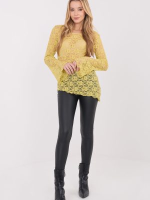 Κομψό κορμάκι με δαντέλα, με εκλεπτυσμένο και θηλυκό χαρακτήρα, ιδανικό για επίσημες περιστάσεις, πάρτι, καθώς και για καθημερινές εμφανίσεις ή για τη δουλειά. Το μοντέλο ξεχωρίζει για την ποικιλία της υφής του υλικού, που προσθέτει λεπτή κομψότητα και εντυπωσιακή εμφάνιση. Το μπλουζάκι έχει κατασκευαστεί από συνδυασμό πολυαμιδίου και ελαστάνης, που εξασφαλίζει ευελιξία, προσαρμοστικότητα στη σιλουέτα και άνεση κατά τη διάρκεια της χρήσης. Το κανονικό μήκος σε συνδυασμό με τα μακριά μανίκια τύπου καμπάνα δημιουργεί μια στυλάτη, ελαφρώς αέρινη γραμμή, ενώ η στρογγυλή λαιμόκοψη τονίζει τη γραμμή του λαιμού και προσθέτει κλασική κομψότητα. Το μοντέλο δεν διαθέτει κλείσιμο και φοριέται από το κεφάλι. Η έλλειψη επένδυσης καθιστά το μπλουζάκι ελαφρύ και διαπνέον, συμβαδίζοντας άριστα τόσο με κομψά παντελόνια όσο και με φούστα, δημιουργώντας μια εντυπωσιακή και μοντέρνα εμφάνιση.