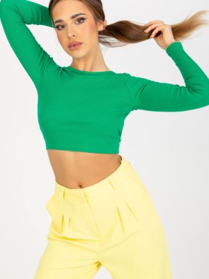 Κοντή μπλούζα με ενδιαφέρον κόψιμο και μακριά μανίκια. Στην πλάτη, η μπλούζα έχει ένα κόψιμο και δέσιμο.