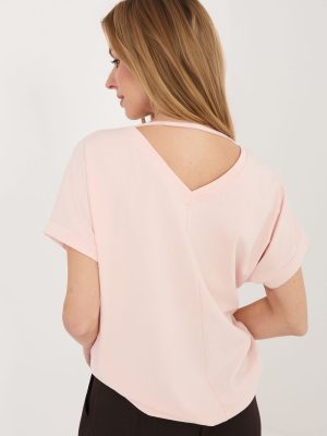 Μια καθολική μπλούζα με καθημερινό χαρακτήρα, που θα είναι ιδανική τόσο για καθημερινή χρήση όσο και για τη δουλειά. Το λείο σχέδιο της προσδίδει διαχρονική κομψότητα, καθιστώντας την εύκολη στην προσαρμογή σε πολλές εμφανίσεις. Κατασκευασμένη από υψηλής ποιότητας μείγμα βαμβακιού και ελαστάνης, προσφέρει άνεση κατά τη διάρκεια της χρήσης καθώς και ελαφριά προσαρμογή στη σιλουέτα. Η τυπική της μήκος και το κοντό μανίκι την καθιστούν ιδανική για κάθε εποχή του χρόνου. Η μπλούζα διαθέτει εντυπωσιακό ντεκολτέ σε σχήμα V τόσο μπροστά όσο και πίσω, προσθέτοντας της μια διακριτική θηλυκότητα. Το μοντέλο είναι χωρίς κούμπωμα, κάτι που τονίζει τον άνετο και μινιμαλιστικό της χαρακτήρα.