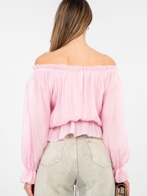 Ένα κομψό μπλουζάκι σε στυλ μποχό είναι ο συνδυασμός της υποχθόνιας θηλυκότητας και της ελεύθερης ελαφρότητας. Το απλό σχέδιο υπογραμμίζει τον καθολικό του χαρακτήρα, καθιστώντας το ιδανικό τόσο για καθημερινή χρήση, για τη δουλειά, όσο και για πιο επίσημες περιστάσεις. Κατασκευασμένο από έναν συνδυασμό λυοσελ και πολυεστέρα, εντυπωσιάζει με την απαλότητά του, την ελαφρότητα και τη λεπτή ροή της δομής του υλικού. Ο ιστός εφαρμόζει όμορφα στη σιλουέτα, εξασφαλίζοντας άνεση καθόλη τη διάρκεια της ημέρας. Το μπλουζάκι έχει επένδυση στο κεντρικό μέρος, που αυξάνει την άνεση και ενισχύει την αισθητική του φινιρίσματος. Το μοντέλο με τον ισπανικό λαιμό αναδεικνύει αποτελεσματικά τους ώμους, προσδίδοντας στην εμφάνιση ρομαντικό χαρακτήρα. Το μακρύ μανίκι που τελειώνει με βολάν προσθέτει ελαφρότητα και υπογραμμίζει την ατμόσφαιρα μποχό. Ένα επιπλέον πλεονέκτημα είναι η δέσμευση στο μπροστινό μέρος, που αποτελεί μια υποδειγματική, διακοσμητική αναφορά, ενώ το βολάν στο κάτω μέρος προσθέτει ροή και γυναικεία γοητεία. Είναι μια μοναδική πρόταση για γυναίκες που εκτιμούν την κομψότητα με μια πινελιά νωθρότητας και θέλουν να φαίνονται στιλάτες σε κάθε περίσταση.