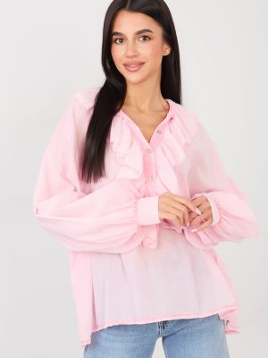 Μια στιλάτη καθημερινή μπλούζα σε στυλ boho, που συνδυάζει την άνεση με έναν θηλυκό, ελαφρώς ρομαντικό χαρακτήρα. Κατασκευασμένη από μαλακό βαμβάκι, παρέχει άνεση κατά την χρήση και ελευθερία κινήσεων καθ’ όλη τη διάρκεια της ημέρας. Το μοντέλο με ομαλό σχέδιο διαθέτει κλασικό, στρογγυλό λαιμόκοψη με λεπτή λωρίδα, που προσθέτει κομψότητα και διακριτική γοητεία. Οι φουσκωτοί, μακρινοί μανίκοι υπογραμμίζουν τη θηλυκή γραμμή και προσφέρουν στη συνολική εμφάνιση μια μοντέρνα, boho αίσθηση. Το κλείσιμο με αρκετούς κουμπιά μπροστά διευκολύνει την εφαρμογή και αποτελεί μια διακριτική διακοσμητική λεπτομέρεια. Το κανονικό μήκος διασφαλίζει ότι η μπλούζα θα ταιριάζει τέλεια τόσο σε καθημερινές όσο και σε επαγγελματικές εμφανίσεις, συνδυάζοντας άνεση με διαχρονικό στυλ.