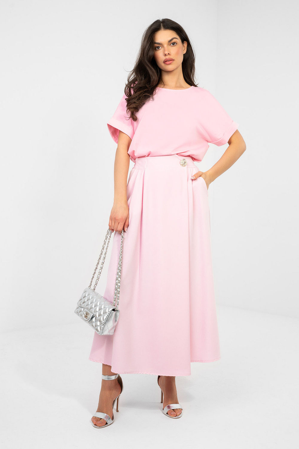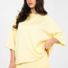 Η κλασική μπλούζα basic με oversized κόψιμο είναι απαραίτητη σε κάθε γκαρνταρόμπα. Η χαλαρή γραμμή εξασφαλίζει την ελευθερία κινήσεων και την άνεση κατά τη διάρκεια όλης της ημέρας, ενώ το κανονικό μήκος την καθιστά ιδανική είτε φορεμένη μέσα από παντελόνια είτε έξω. Το μοντέλο διαθέτει κοντό μανίκι και κλασικό, στρογγυλό ντεκολτέ, που της δίνει έναν универсικό και διαχρονικό χαρακτήρα. Το απαλό σχέδιο υπογραμμίζει τον μινιμαλιστικό στυλ και διευκολύνει τη δημιουργία πολλών εμφανίσεων, από αθλητικές μέχρι πιο γυναικείες, με την προσθήκη ενός σακακιού ή κοσμημάτων. Η μπλούζα είναι κατασκευασμένη από υψηλής ποιότητας βαμβάκι με προσθήκη ελαστάνης. Το φυσικό υλικό εξασφαλίζει αναπνοή και άνεση, ενώ η ελαστάνη προσαρμόζεται ελαφρώς στη σιλουέτα, αυξάνοντας την άνεση. Ιδανική βάση για καθημερινές εμφανίσεις, άνετη, универсική και πάντα στη μόδα.