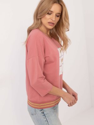 Μια καθημερινή μπλούζα που συνδυάζει άνεση και στυλ σε τέλειες αναλογίες. Κατασκευασμένη από βαμβάκι υψηλής ποιότητας με μια πινελιά ελαστάνης, προσφέρει άνετη χρήση και μια ελαφριά ελαστικότητα για ελευθερία κινήσεων. Η μπλούζα κανονικού μήκους με μανίκια 3/4 είναι μια εξαιρετική επιλογή για καθημερινό styling. Η στρογγυλή λαιμόκοψη τονίζει τον ευέλικτο χαρακτήρα της, ώστε να ταιριάζει σε διαφορετικούς σωματότυπους. Το μπροστινό μέρος είναι διακοσμημένο με ένα εντυπωσιακό τύπωμα εμπλουτισμένο με στρας, το οποίο προσθέτει διακριτική αίγλη και ξεχωρίζει την μπλούζα ανάμεσα στα κλασικά μοντέλα. Η απουσία κλεισίματος εξασφαλίζει άνεση και ευκολία στη χρήση. Αποτελεί ιδανική επιλογή για τις γυναίκες που εκτιμούν το πρακτικό αλλά και κομψό καθημερινό ντύσιμο.