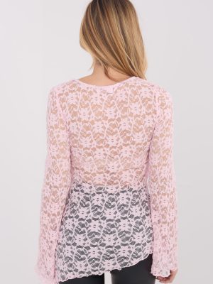Μια κομψή δαντελένια μπλούζα με εκλεπτυσμένο και γυναικείο χαρακτήρα, ιδανική για επίσημες περιστάσεις, εκδηλώσεις, καθώς και για καθημερινές στυλιστικές επιλογές ή για τη δουλειά. Το μοντέλο ξεχωρίζει για την ποικιλόμορφη υφή του υλικού, που προσθέτει μια διακριτική κομψότητα και εντυπωσιακή εμφάνιση. Η μπλούζα είναι φτιαγμένη από ένα μείγμα πολυαμιδίου και ελαστάνης, που εξασφαλίζει ευχέρεια, προσαρμογή στη σιλουέτα και άνεση κατά τη διάρκεια της χρήσης. Το κανονικό μήκος σε συνδυασμό με τα μακριά μανίκια τύπου καμπάνα δημιουργεί μια κομψή, ελαφρώς αέρινη γραμμή, ενώ η στρογγυλή λαιμόκοψη υπογραμμίζει τη γραμμή του λαιμού και προσθέτει κλασική κομψότητα. Το μοντέλο δεν διαθέτει κλείσιμο και φοριέται από το κεφάλι. Η έλλειψη επένδυσης καθιστά τη μπλούζα ελαφριά και αεριζόμενη, συνδυάζοντάς την τέλεια τόσο με κομψά παντελόνια όσο και με φούστες, δημιουργώντας μια εντυπωσιακή και σύγχρονη στυλιστική επιλογή.