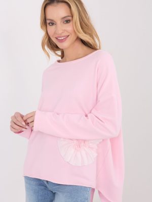 Μια καθημερινή μπλούζα casual, που συνδυάζει την άνεση με μια διακριτική, γυναικεία αίσθηση. Φτιαγμένη από μαλακό μείγμα βαμβακιού και πολυεστέρα, παρέχει άνεση κατά την επαφή και αντοχή του υλικού. Το μοντέλο έχει λείο φόντο με κλασική στρογγυλή λαιμόκοψη και μακρύ μανίκι, καθιστώντας το ένα οικουμενικό στοιχείο της καθημερινής γκαρνταρόμπας. Μια διακριτική διακόσμηση είναι η εφαρμογή σε σχήμα ραμμένου λουλουδιού αριστερά στο κάτω μέρος, που προσδίδει στη μπλούza μια διακριτική γοητεία και χαρακτήρα. Η απουσία κλεισίματος τονίζει την απλότητα και το χαλαρό στυλ αυτού του μοντέλου.