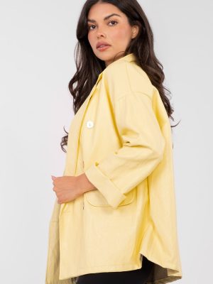 Η μοντέρνα γυναικεία σαλοπέτα από οικολογικό δέρμα είναι μια στυλάτη πρόταση για casual και επαγγελματικά στυλ. Κατασκευασμένη από υλικά υψηλής ποιότητας που είναι ένας συνδυασμός βισκόζης και πολυουρεθάνης, παρουσιάζεται κομψά και ταυτόχρονα είναι άνετη στη χρήση. Το μοντέλο έχει κανονικό μήκος με προπέτες που υπογραμμίζουν την κλασική γραμμή. Η διπλή κουμπότρυπα δίνει στη σαλοπέτα έντονο, μοντέρνο χαρακτήρα. Οι μιμητικές τσέπες έχουν διακοσμητική λειτουργία, διατηρώντας μια καθαρή, λεία γραμμή στο μπροστινό μέρος. Η σαλοπέτα έχει μακριά μανίκια, δεν είναι θερμαινόμενη ή γεμάτη, γεγονός που την καθιστά ιδανική για την άνοιξη/φθινόπωρο/χειμώνα ως στοιχείο στρωματοποιημένων στυλ. Ο λεία σχέδιο την καθιστά универсальną και εύκολη στην αντιστοίχιση τόσο με υφασμάτινα παντελόνια όσο και με τζιν ή φόρεμα. Είναι η ιδανική επιλογή για γυναίκες που εκτιμούν το μοντέρνο στυλ, την κομψότητα και τον αιώνιο σχεδιασμό.